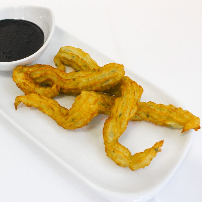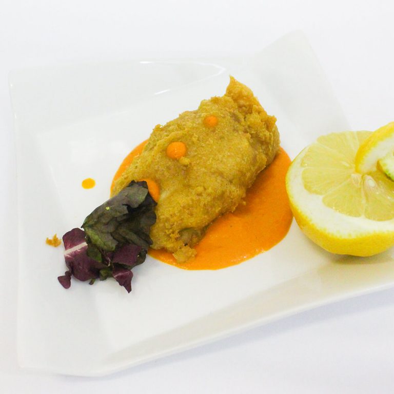 Empezamos escaldando las migas de bacalao, para luego escurrir y turbinar. Para la masa mezclamos la harina, la yema y…